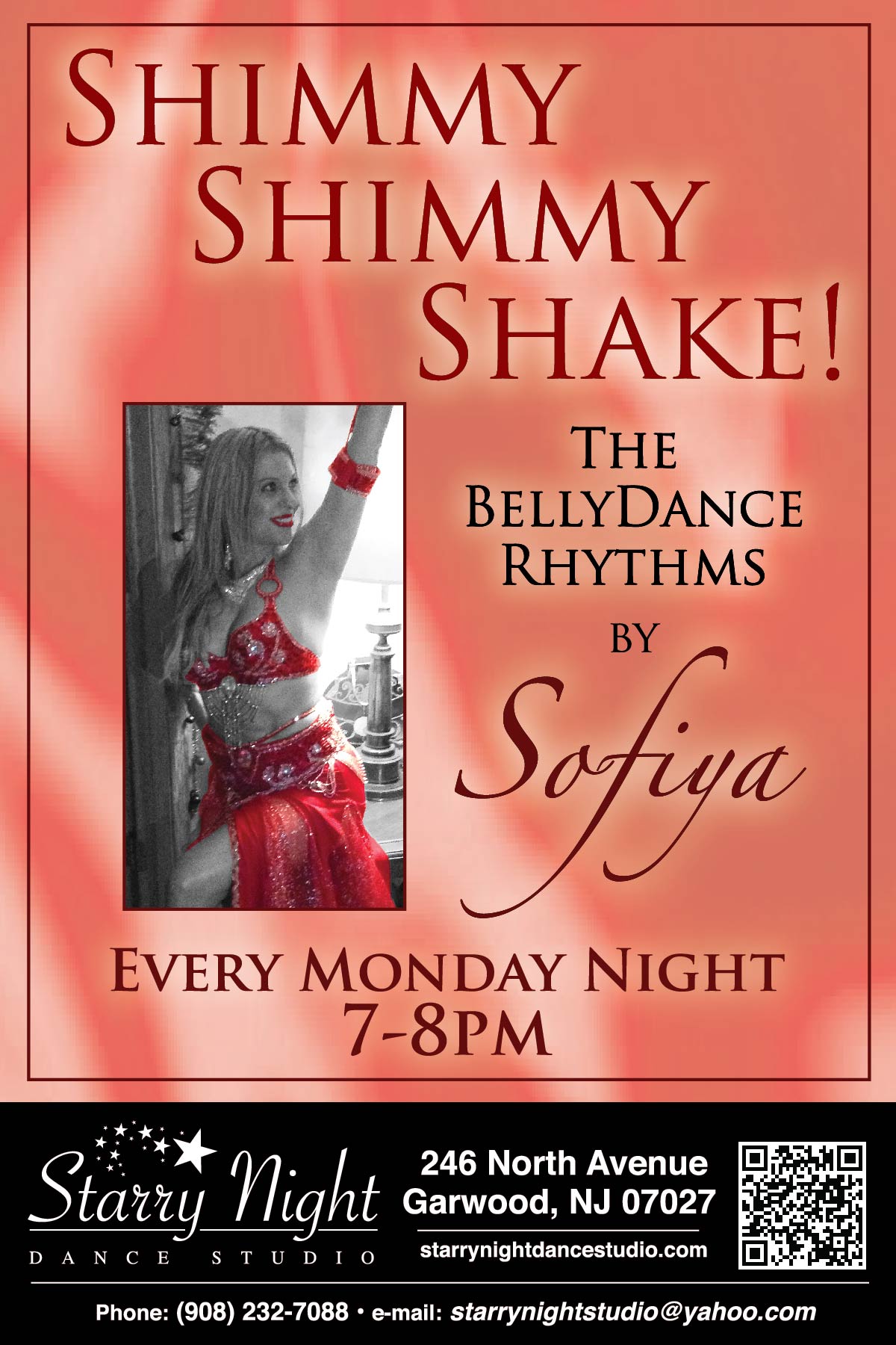 SaFire shares all the secrets to her hypnotic movements used in the art of Belly Dance. Experience expression and power, seduction with grace. Build self confidence, balance & tone up all in one class! Tuesday's from 6:30pm - 7:30pm (starting 2/28/12) Belly Dance Boogie at The YMCA of Ridgewood NJ: http://www.ridgewoodymca.org/ , Saturday's from 11:00am - 12:00pm (continuous) Belly Dance Class (all levels) at The GYM of Engelwood NJ: http://www.gettothegym.com/englewood/default.asp . www.safirebellydance.comSakara Amyra: Egyptian Cabaret, zill workshops.Denville, Rockaway, Oak Ridge. SakaraAmyra@gmail.com
